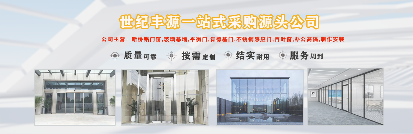 天津世紀豐源門窗有限公司從事斷橋鋁門窗,玻璃幕墻,平衡門,肯德基門,不銹鋼感應(yīng)門,百葉窗,辦公高隔,制作安裝一站式訂制生產(chǎn)及配套服務(wù)等。  公司自成立以來,始終堅持以人才為本、誠信立業(yè)的經(jīng)營原則,薈萃業(yè)界精英,成熟的技術(shù)、管理方法及企業(yè)經(jīng)驗與國內(nèi)企業(yè)的具體實際相結(jié)合,為企業(yè)供給各個方面的解決方案,使企業(yè)在激烈的市場競爭中始終堅持競爭力,實現(xiàn)企業(yè)快速、穩(wěn)定地發(fā)展。  質(zhì)量好、服務(wù)好、才能信譽好,公司已在諸多領(lǐng)域取得輝煌成績,愿意成為您可信賴的長期合作伙伴。  讓我們攜手同行,共同實現(xiàn)“讓普通老百姓都用得上高端門窗”...
